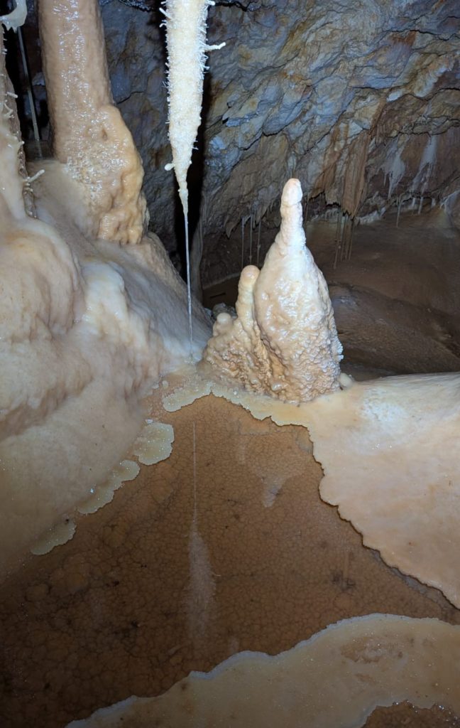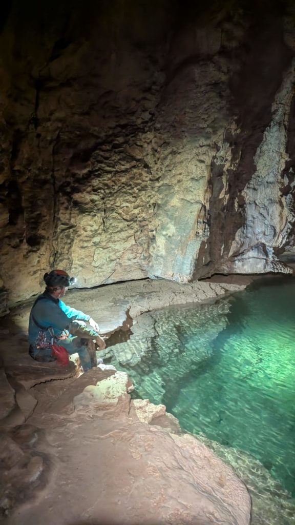 Cet aven est immense, les galeries y sont hyper sculptées et grâce à la pluie, nous avons la chance de pouvoir observer un joli petit lac à l’entrée de la cavité.