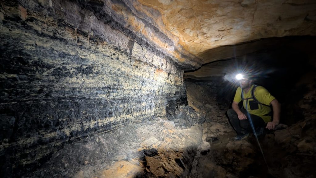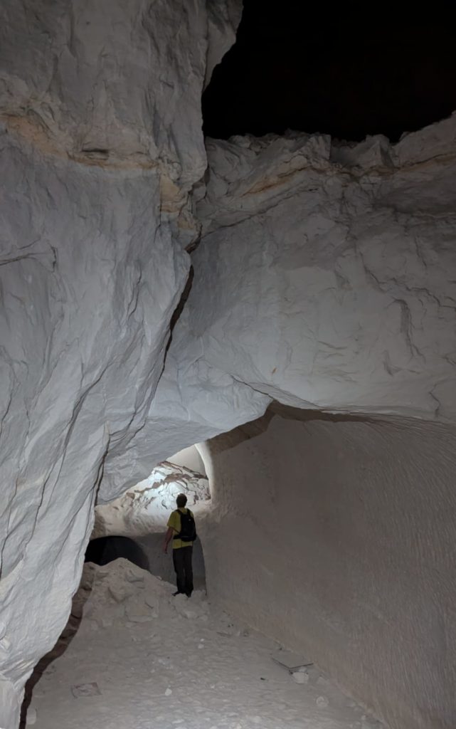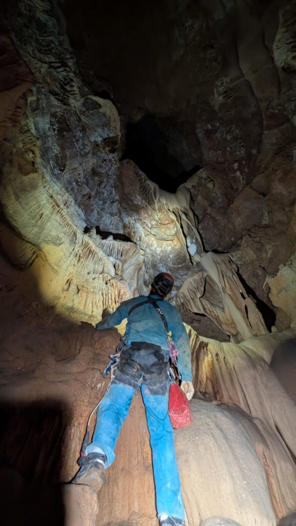 Il s’agit d’un aven hyper développé, long d’environ 7km ou hélas le CO2 nous empêchera d’y descendre comme aussi loin que prévu. Nous ne parcourons qu’une section de l’entrée jusqu’au premier boyau situé avant le P6 menant à la salle de la boîte aux lettres.
