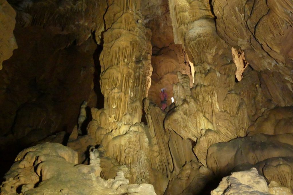 Une petite sieste ensuite avant de repartir pour la visite d’un aven inconnu au bataillon de Guigui : l’aven Emeraude ! Mon préféré, car hyper concrétionné et très rentable : situé juste à côté de la route, avec des formes de concrétions splendides , et un balisage qui impose un cheminement strict. Une petite perle du coin pour nos yeux !