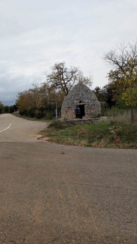 3ième jour : une balade vélo en matinée avant la perturbation me semble être idéale pour varier les plaisirs ! Nous partons pour un tour d’une vingtaine de kilomètres sur des sentiers faciles avec découverte des capitelles (cabanes en pierres sèches) , des dolmens et autres petits moulins à eau. Sur ce terrain, que constitue tout le plateau de Méjannes, rouler sans poser pied à terre semble être un jeu d’enfants, en comparaison avec nos terrains du 06.