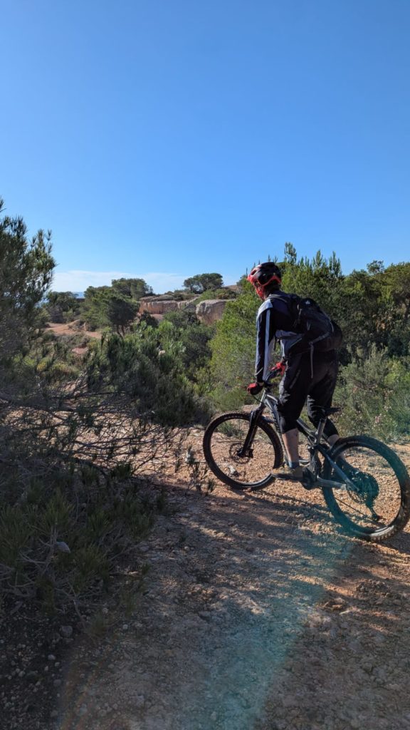Soirée tranquille au restaurant avec Malek et Christiane, puis nuit en camion sur le rocher de Vitrolles sont prévues. Au réveil, avec le soleil revenu, nous nous équipons en mode VTT pour aller rouler sur les lieux où Guillaume a démarré l’apprentissage du vélo avec son père. Il s’agit du plateau de Vitrolles, immense, très roulant, avec des pistes mais aussi des sentiers plus ou moins difficiles. Un régal pour mes yeux dans un décor de rêve bien différent de celui de chez nous, qui me rappelle combien rouler sur le trait de côte et dans le sud est agréable.